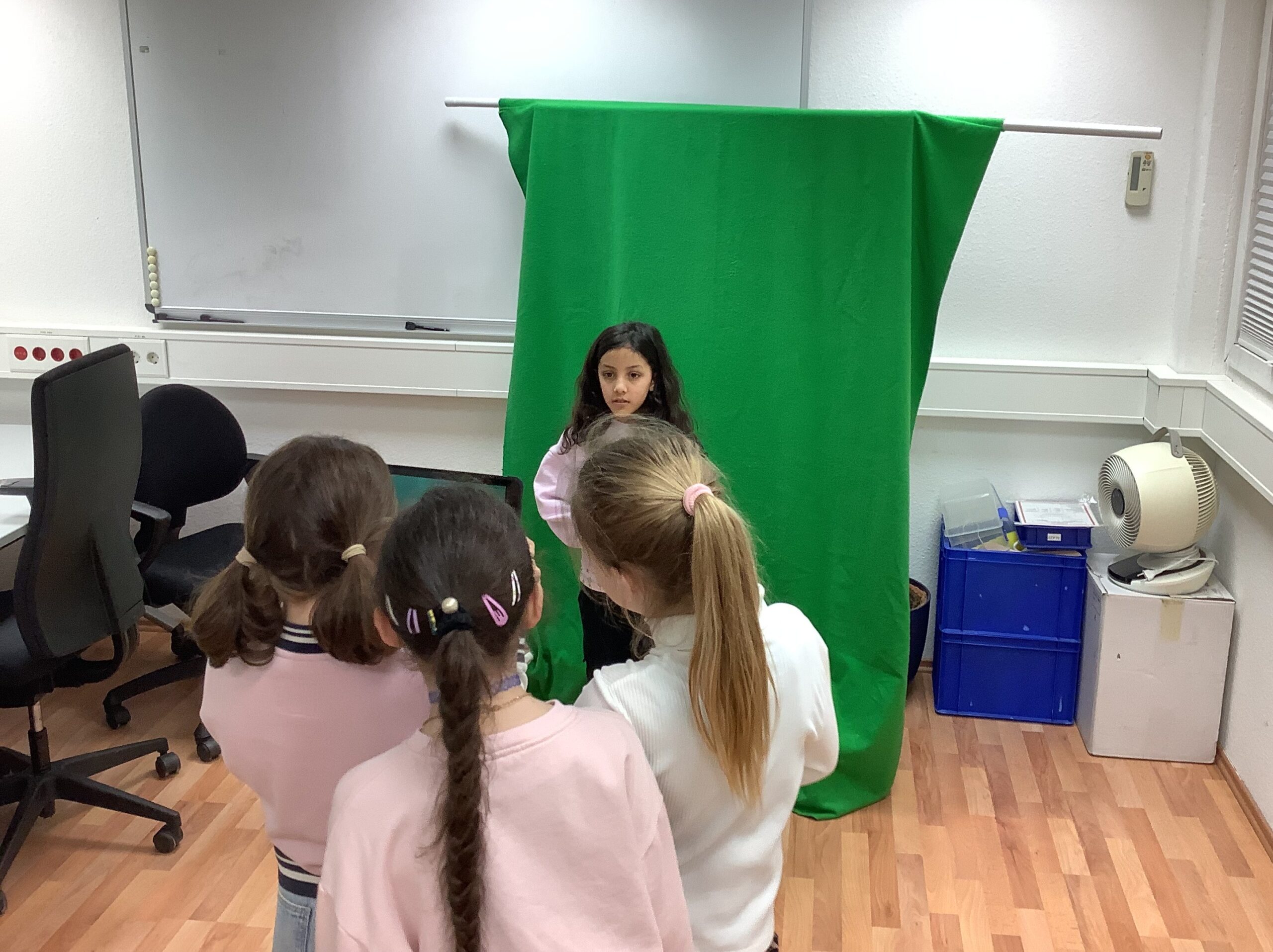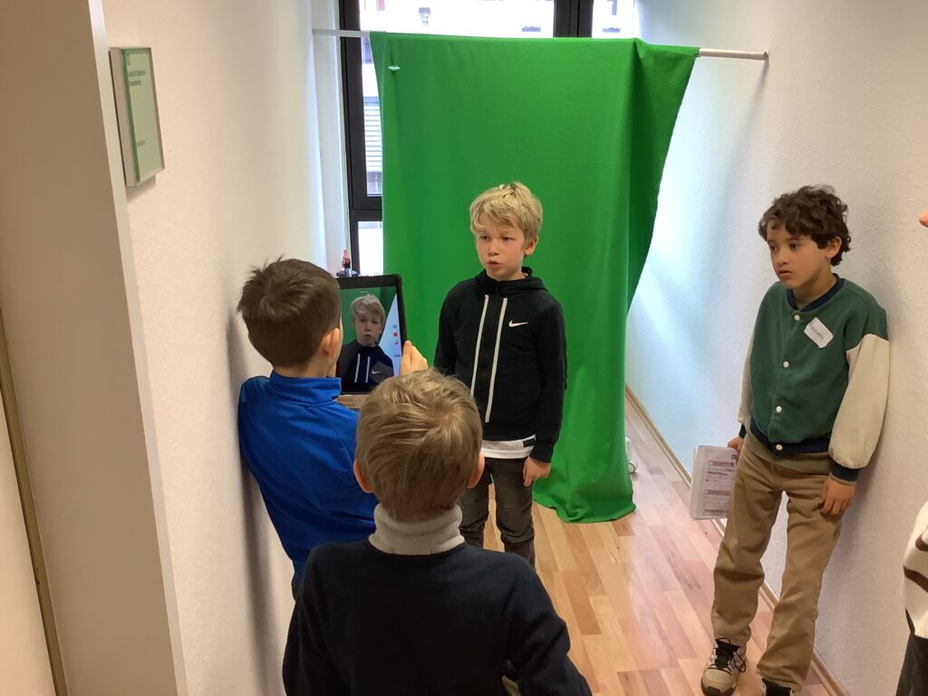 Zwei Klassen unserer Schule besuchten das Science Lab der Uni Köln. Dabei konnten die Kinder verschiedene Erfahrungen zum Thema „Filme drehen“ sammeln und erproben. Die Kinder des ersten Schuljahres haben Stop-Motion-Filme erstellt. Die Kinder des dritten Schuljahres haben sich als Reporter und Reporterinnen über besondere Orte in Köln informiert. Ihre Informationen haben sie zu einem Drehbuch verarbeitet, mit Hilfe der Greenscreen-Technik kurze Filme aufgezeichnet und in einer App passende Hintergründe eingefügt.